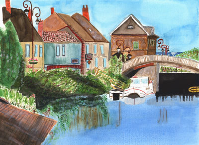 Cercy-la-Tour. Watercolor over pencil sketch, of a Chicago Tribune photo by Alan Solomon.