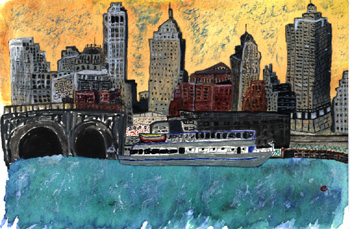 Doro's Cityscape. Watercolor from b&w photograph by Dorothy Ravneberg.