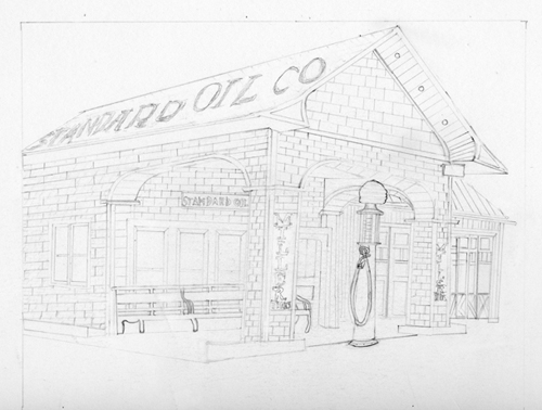 Rt. 66-Odell I (2008). Pencil drawing from Lamoureux photo.