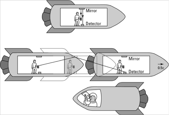 - theory of special relativity--space and time are related such that mechnical physics depends on relative motion, which means that measurements (and phenomena) vary depending on the relative speeds of the observers/observed).