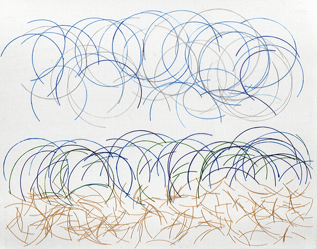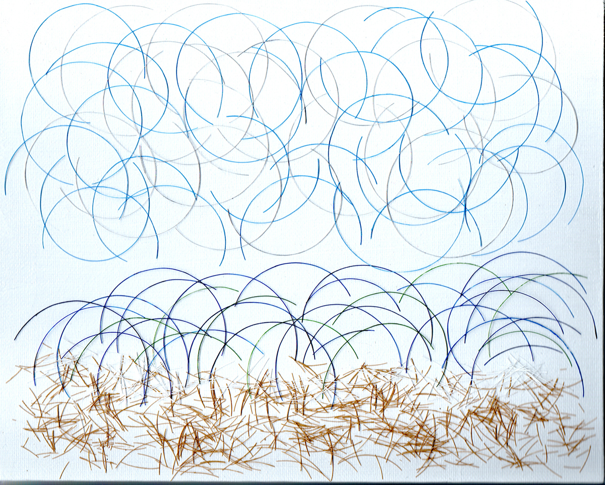 Sand, Water, Sky 1 (2023). Acrylic paint on Nylon Thread.