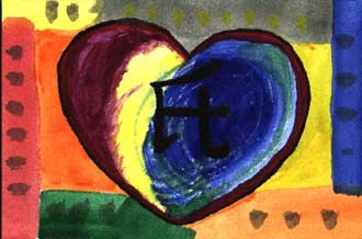 Thanks to Joan (2000). Watercolor from a design by Peter Max [character reads shi': family].